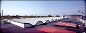 Indtryk af den bølgende loftskonstruktion set fra lufthavnsterminalens 1.sal, der indeholdt diverse administrative funktioner.
