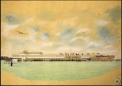 Akvarel fra arkitektkonkurencen, der blev afholdt i 1936