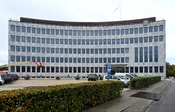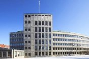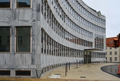Rådhuset blev opført i 1939-1942 og er tegnet af Hans Erling Langkilde og Ib Martin Jensen. Den karakteristiske konkavt formede bygning er beklædt med grønlandsk marmor.