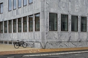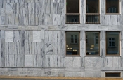 Marmorpladerne er sorteret efter farve til de enkelte facader, og det er tilstræbt at give pillerne en lysere tone end brystningerne.