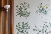 I vielsessalen er Vægudsmykningen udført af maleren Ejnar Nielsen og viser danske blomster.