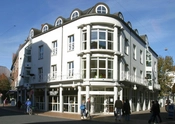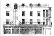 Bygningen er tilpasset gadens hushøjder og ældre bygningsdetaljer.