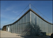 Under den højeste del af taget er indrettet mødelokaler. Under de skrånende sider opbevares både og materiel.
