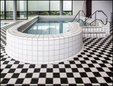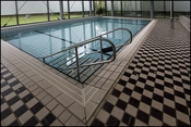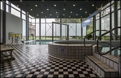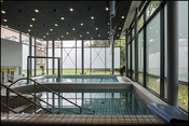Indgang til svømmehal der ligger i tilknytning til Marselisborg Hospital. Svømmehallen bruges derfor primært som en del af et rehabiliterings- og genoptræningsprogram.