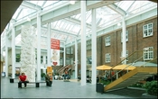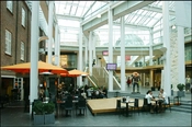 11 høje stålsøjler bærer det store ovenlys og forstærker rummets opadstræbende karakter. På Kulturtorvet er der cafeer, restauranter og scene, og ældre bygninger og nyt infill danner tilsammen rammen.