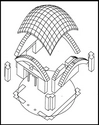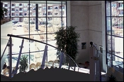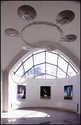 Interiørbillede visende udstillingskarnap med kuplet ovenlys formet som et kvart kugleudsnit.