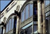 Med sin markante struktur og stærke ornamentik skiller forretningshuset sig ud fra nabobygningerne. Husets tunge overdel er mere i familie med den østrigske secession end den fransk-belgiske art nouveau.