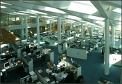 Hovedsædet er i fem plan og indeholder samtidig boghandel, cafe og et indre, overdækket torv.