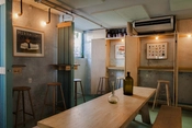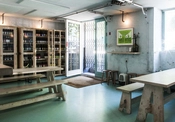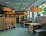 Bryggeriet Mikkeller og bryggeriet To Øl er gået sammen om at åbne en ny bar på Nørrebro. Tanken har været at skabe en moderne ølhal med et råt look, og klare materialiteter. Et blankt turkist gulv står i kontrast til elementer i krydsfiner og de lette snedkermøbler i lyst træ. Som kontrast til interiøret står den varme belysning i trælamper.
