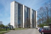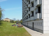 Boligbebyggelsen Milestedet blev opført i perioden 1953‑58 og var tegnet af nogle af tidens førende arkitekter, herunder Svenn Eske Kristensen, Erik Møller og Kay Fisker. Milestedet ligger tæt ved Roskildevej og består i dag af to højhuse i op til 15 etager, der er placeret vinkelret på Roskildevej mod nord, og vinkelbyggede blokke i tre etager mod syd. Højhus 2 er på 16 etager og opført i præfabrikerede betonelementer.