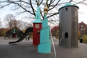Mirror House er en transformation af en eksisterende bygning ved den bemandende legeplads, Tårnlegepladsen i Fælledparken. Den gamle udslidte barak med toiletter og opholdsrum er blevet omdannet til et indbydende hus på 140 m2. Facaden og taget er beklædt med sort tjæret træ, bortset fra gavlene, som er helt dækkede af bugtende spejle, som reflekterer omgivelserne, og de legende børn i surrealistiske formationer. Ved hver dør er et krummet spejl, lignende dem man kender fra Hurlumhejhuset. Tårnlegepladsen er designet af Monstrum.