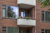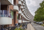 Bygningen rummer ca. 200 lejligheder og facaden karakteriseres af lige så mange hvide balkoner, der fremstår i ornamental kontrast til husets røde teglstensmure. Længen består af to forskellige dele, med lidt forskel i facadeudformningen. Den ene del har runde vinduer ind til badeværelserne, mens delen tættest på Amagerbrogade ikke har nogen runde vinduer. I dag er delen tættest på Amagerbrogade andelsboliger, mens den anden ende er almene boliger.