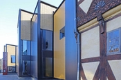 I 2013 åbnede den nye udstillingsbygning. Bygningen er inspireret af byens oprindelige matrikelstruktur og udformet som to klynger af langhuse. Deres størrelsesforhold og forskudte placering harmonerer med områdets historiske bygninger. Den bærende konstruktion af mørke stålsøjler og ståldragere med udfyldninger af gyldne tegl er en nyfortolkning af Møntergårdens gamle bindingsværksbygninger. De gule tegl er lagt i et særligt mønster mellem bindingsværket, som viser at fyldningerne ikke er bærende, og denne effekt bliver understreget af den meget smalle fuge, der får det til at se ud, som om murstenene bare er stablet ind i stålrammerne.