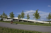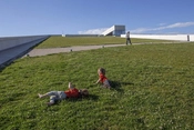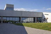 Bygningen lægger sig ind i landskabet og rejser sig mod nord