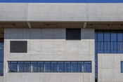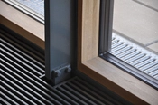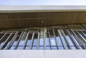 Vertikale lameller skærmer for det varme solindfald på bygningens vestvendte facade