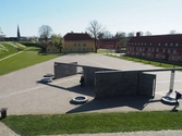 Murene er af beton der er beklædt med bornholmsk Paradisbakkegranit. Lyssøjlerne er udført i graffitalmalet vinkeljern med glas. Spredt i de tre rum er der syv ottekantede brønde af granit som spejler himlen om dagen og om aftenen spejler lyset fra lamperne.