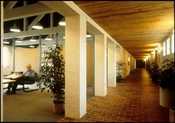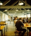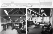 I kantinen eksponeres tagkonstruktionen i forhold til det mørke loft.