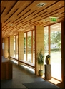 Vinduerne er udført af oregonpine og loftet af fyrretræ.