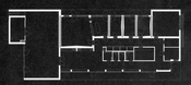 For at undgå lydtransmision mellem de forskellige rum er de opbygget som selvstændige kasser mellem skillevægge af beton. I midten en selvstændig kasse med toiletter og depotrum.