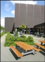 Baggården, hvor der er mulighed for at spise medbragt mad, er beliggende nord for bygningen og dermed væk fra trafikstøjen.