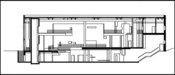 Huset har tre vandrette planer: Nederst vand, i midten jord og øverst luft. Udskæringerne i planerne giver et panoramisk overblik.