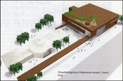 Det nye museum er en tilbygning til det eksisterende museum, som ses til venstre på planen.