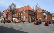 Bygningerne ligger mellem Torvet, Strandgade og Vægtergade og er opført af røde håndstrøgne mursten på granitsokkel. Vinduesindfatninger og skorstensafdækning er udført af Nexøsandsten.