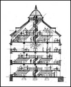 Om- og nybyggeriet forholder sig meget loyalt til den gamle bygningsmasse og indeholder bla. et stort, smukt nyopført, fireetagers glasoverdækket rum med glasudsmykninger udført af billedkunstneren Henning Damgaard.