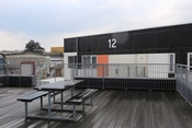 Byggeriet er formet som en hestesko, som danner et centralt gårdrum, hvorfra der er adgang til boligerne. Gårdens opholdsarealer er domineret af en stor sammenhængende flade i sort asfalt.