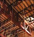 Loftets gitterspærkonstruktioner hviler af på ydermurene.