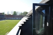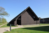 På første salen er der gennem tagstrukturen kig ud over landskabet