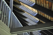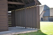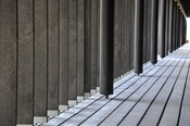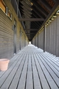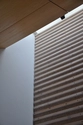 Trælamellerne skaber et diffust lys i gangforløbet, og varierende kig som man bevæger sig gennem det