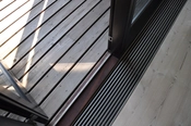 Lysindfald gennem tagets karakteristiske lameltag til det overdækkede terrasserum
