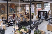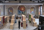 Nørrebro Bibliotek er indrettet i 1000 m2 af den 100 år gamle sporvognsremise, der siden 1973 har været Nørrebrohallen.