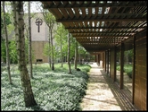 Den ekstensive brug af tegl karakteriserer det rolige og enkle gårdrum.