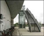 Både trappe og elevator er blevet til fritstående bygningselementer.