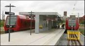 Stationen er placeret i et nedslidt industrikvarter og omkring den finder man byggetomter, parkeringspladser, bilværksteder, nye erhvervsbygninger og gamle fabrikker.
