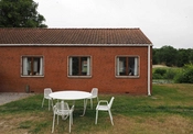 Foran bibliotekets østgavl og i forlængelse af pergolaen er en smuk terrasse anlagt ud mod voldgraven.
