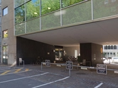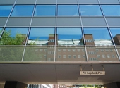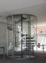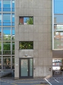 Facaderne er opført som curtainwall i glas med facadeelementer af træ der bæres af et stålskelet. Mod Nyropsgade er vinduerne faste mens de mod gårdsiden er vippevinduer lavet af aluminium. Brandtrappens afslutning i den åbne underetage er skærmet af klart glas.