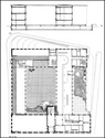 Centralt i tilbygningen ligger den store Rådhushal med ovenlyskonstruktion.