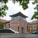 Økolariet er beliggende ud mod den befærdede gade Dæmningen hvor et fireetages tårn med et karakteristisk, svajet tag fortæller at her sker der noget særligt.