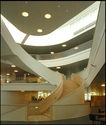 Den boomerang-formede udskæring i alle etageadskillelserne bringer dagslyset ned igennem bygningen.
