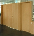 Overalt i bygningen er anvendt lyst, lamineret asketræ med perforeringer, der effektivt dæmper lyden.