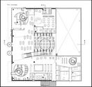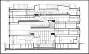 På planen ses de tre kæmpe søjler, som udgør den overordnede, bærende konstruktion. Disse indeholder toiletter, elevatorer og sekundære trapper. De bærende søjler suppleres af en række mindre søjler, som er placeret frit - udelukkende i forhold til de konstruktive krav.