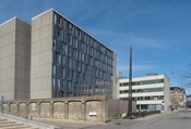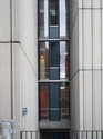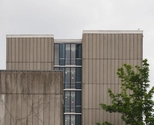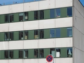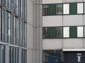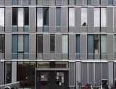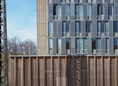 Skematikken i kollegiefløjen brydes af skydeskodder, som anbringes af beboerne og derved danner et vilkårligt mønster