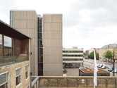 Komplekset, tegnet af ægteparret Kjeld og Elsebet Ussing i 1964-1968, består af en kollegiefløj med 104 værelser og en institutionsfløj med børnehave og skole. Bygningen, der er placeret i randen af Fælledparken, er opført i beton. Facaden har vertikale opdelinger med en rytmisk vekslen mellem åbne og lukkede facader.