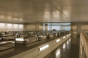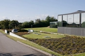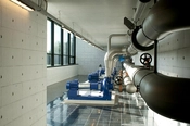 Vandværket er anlagt på en åben grund der skråner mod vest. En del af vandrensningsprocessen tåler ikke dagslys, og som konsekvens er de afsnit af bygningen der rummer den slags funktioner, gemt under jordoverfladen. In situ beton er benyttet, og de synlige runde fordybninger fra støbeprocessen ses overalt i bygningen. Den mørke facadebeklædning er i titan zinc med stående false.