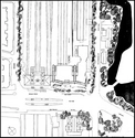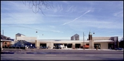 Under en tresidet glaspyramide gemmer sig en bagerbutik nogle trin under terræn. Betonportalen er muligvis et symbol for trafikanternes videre færd ad Kystbanen.