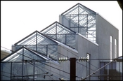 Bagerebutikken i glaspyramiden tiltrak så meget varmeenergi, at der blev opsat markiser på den sydvendte glasside.