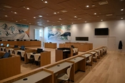 Bygningens indre er designet så dommere, nævninge og domsmænd, vidner og anklagede ikke utilsigtet møder hinanden før de befinder sig i retssalen. Og siddepladser, balkoner, gårdrum og udsigt over vandet giver plads til, at brugere af huset kan finde ro væk fra retssalen.